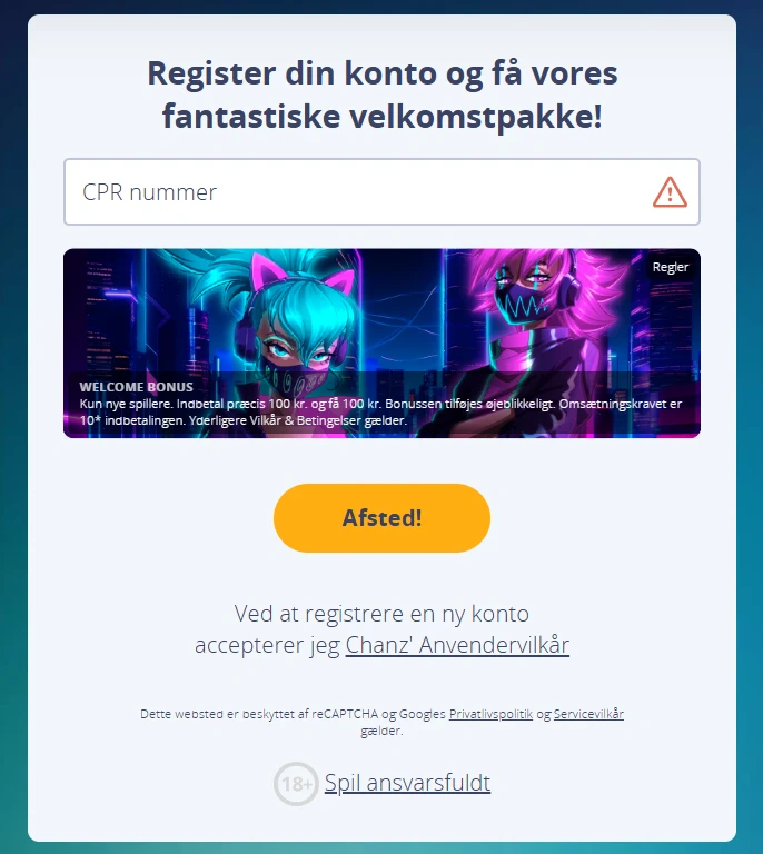 For spil om rigtige penge via dit Chanz login, skal du opfylde vores strenge kriterier. Være mindst 18 år, have lovlig spillelicens i Danmark eller dit angivne område, og fremvise gyldig ID ved forespørgsel.
