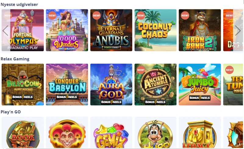 Tier 2-udbydere: Play'n GO, Yggdrasil, Red Tiger Gaming, Thunderkick